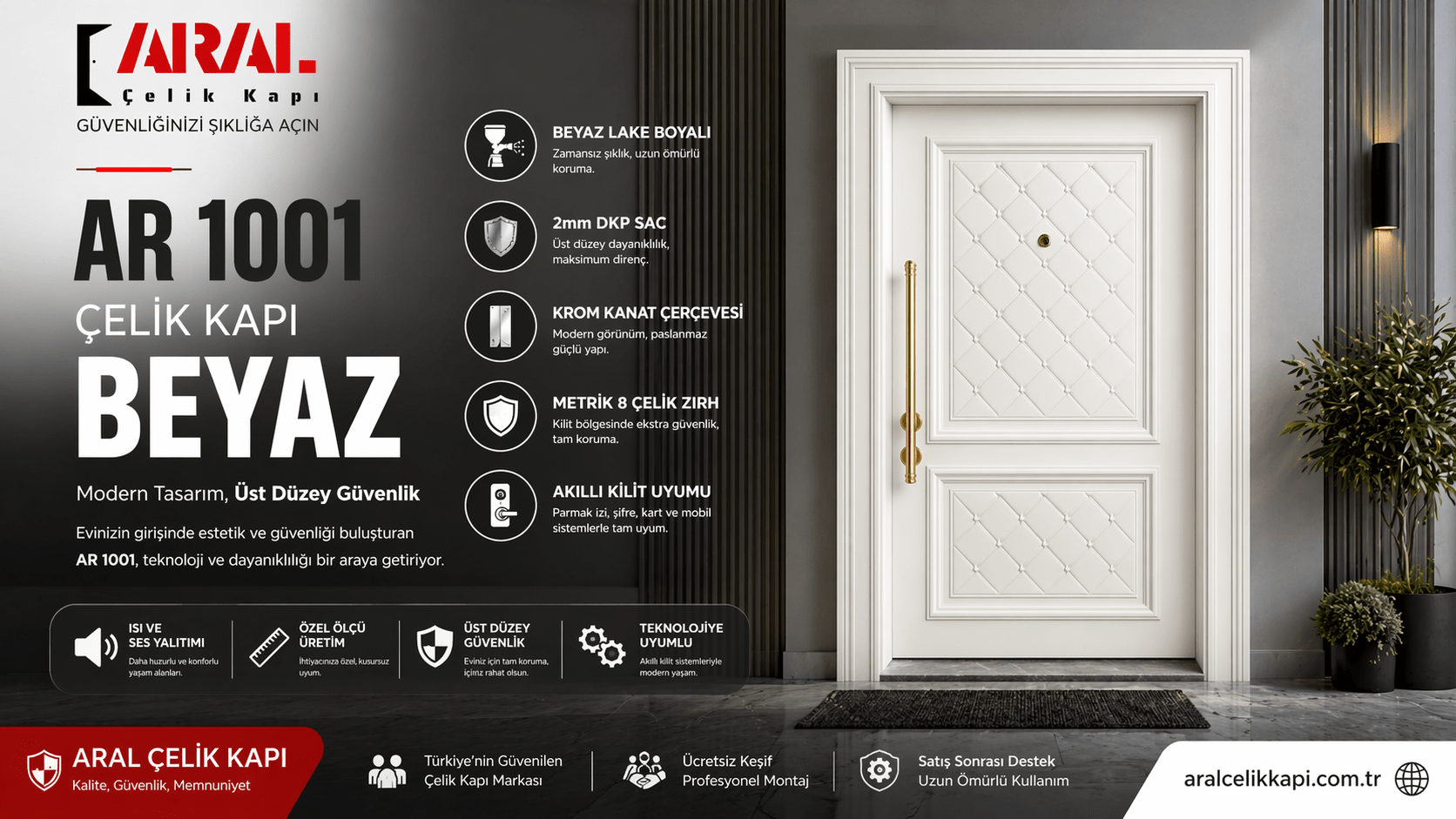Beyaz lake boyalı yüzeyi sayesinde ferah bir görünüm sunan Ar 1001 modeli, hem apartman dairelerinde hem de villa girişlerinde rahatlıkla tercih edilebilir. Minimal tasarım çizgileri ile zamansız bir şıklık sunarken, sağlam iç yapısı ile güvenliği en üst seviyeye taşır.